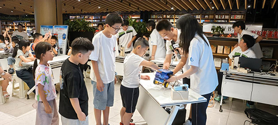 同時科技創新也致力于服務社會,9月22日下午,創新團隊就帶著自己創作的作品進入書城,對小朋友們開展了一場不同的頭腦風暴。