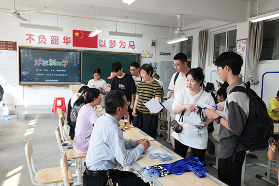 教室里貼心溫暖的歡迎板書,寢室床鋪上整齊擺放的生活用品,無不透露出班主任與教職工們的辛勤與關(guān)懷。一遍遍耐心指引,一趟趟手提肩扛,從報(bào)到注冊(cè)到交通指引,從行李搬運(yùn)到校園導(dǎo)覽,每一環(huán)節(jié)都力求盡善盡美。師生志愿者們雖額頭冒汗,嗓音漸顯疲憊,卻只是輕輕一抹汗水,匆匆潤喉,隨即以更加燦爛的笑容再次投入到緊張而有序的服務(wù)工作中。這些忙碌而充滿活力的身影,構(gòu)成了校園中一道亮麗的風(fēng)景線。