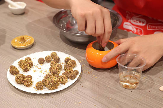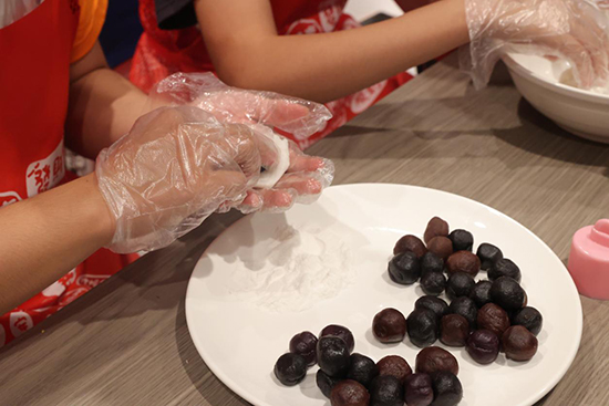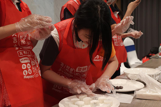 在“宋韻月餅制作”體驗區。同學們親手包餡、模具壓制,品嘗自己親手制作的月餅,共享“食玩月羹”的樂趣。