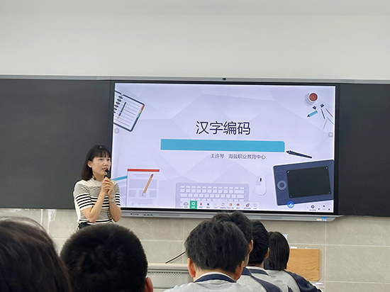 海鹽職業教育中心副校長張劍宏將海鹽職業教育中心的發展沿革、辦學特色以及教育探索娓娓道來。團隊教師們認真聆聽,積極借鑒和吸收成功經驗和創新做法。大家對這所由海鹽理工學校和海鹽商貿學校合并組建、蘊含豐厚人文底蘊和育人智慧的學校有了更全面的認識。
