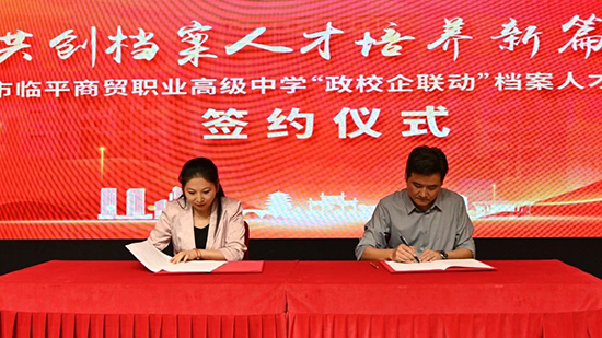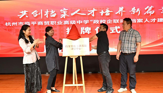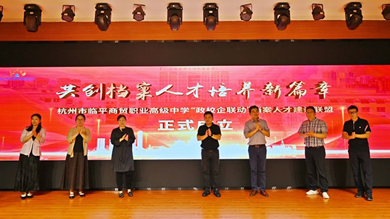 接著,臨平區檔案館、區教育局、區教育發展研究學院、臨平商貿職高及杭州遠大檔案公司共同見證了“政校企聯動”檔案人才建設聯盟的正式成立。這一聯盟的成立,將匯聚政府、學校、企業的優勢資源,共同推動檔案人才的培養和檔案事業的發展。