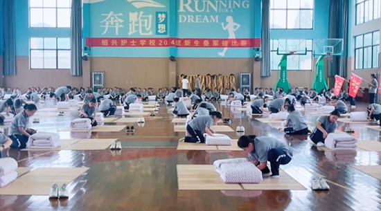 為豐富學(xué)生校園文化生活,提升學(xué)生執(zhí)行力、內(nèi)務(wù)整理水平,引領(lǐng)學(xué)生樹立正確勞動觀,9月21日下午,紹興護(hù)士學(xué)校在體藝館舉辦2024級新生疊軍被比賽。