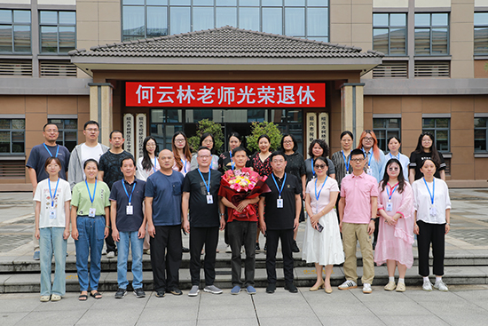 榮退儀式上大家集中觀看了何云林老師教育生涯的回顧短片,周立軍為何云林頒發(fā)了退休證、贈送“榮休紀念”牌匾和鮮花。與會老師紛紛發(fā)言,表達對何老師的歡送離別之情,大家回憶了與何老師共事的點點滴滴并對何老師送出了美好的祝愿,并在一樓廣場集體合影留念。