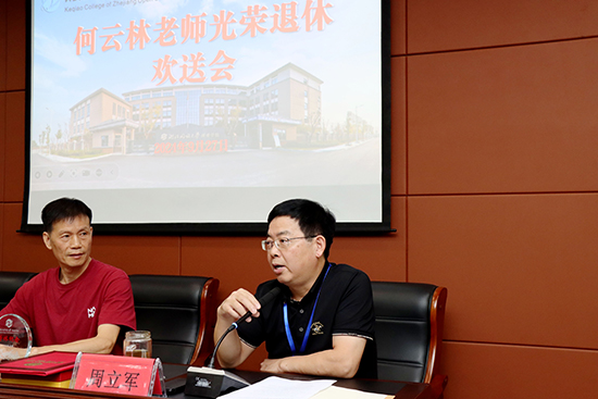 院長周立軍代表學院黨支部和學院致歡送辭,向光榮退休的何云林老師表示衷心的祝賀和親切的問候,對何云林為學院的建設和發(fā)展的辛勤付出表示感謝,并向其致以最真摯的祝福。
