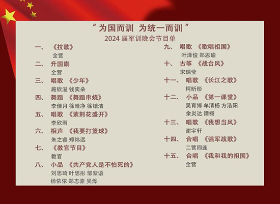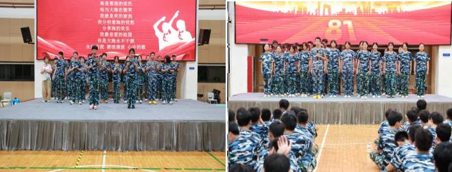 晚會的每一個節(jié)目都充滿了激情與創(chuàng)意,展現(xiàn)了當代青年的風采和愛國情懷。以傳統(tǒng)的拉歌比賽開場,同學們用嘹亮的歌聲和整齊的節(jié)奏,迅速點燃了現(xiàn)場的氣氛。歌聲中傳遞出的青春活力和團結精神,讓人感受到軍訓生活的獨特魅力。