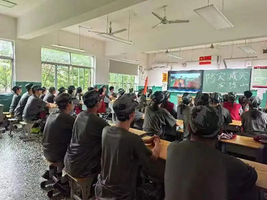 演習開始前,師生們進行了安全知識、緊急疏散、自救互救方法和技能等相關知識的學習,觀看了視頻《防空防災警報的識別與防護知識》和《突發群體性踩踏事故的防護》。