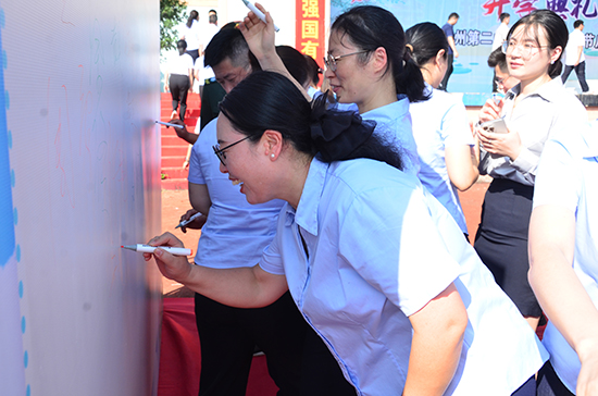 隨著衢州第二中專黨委書記徐凌志宣布首屆班主任節啟動,全體班主任身著正裝,面帶微笑,緩緩步入由紅毯鋪設的“榮耀通道”,兩旁是師生們熱烈的掌聲與祝福的目光。每位班主任在特設的簽名墻上鄭重簽下自己的名字。