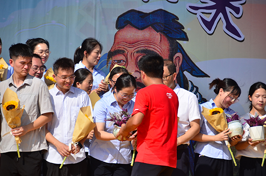 隨后,各班班長手捧鮮艷的向日葵,一一為班主任獻上這份簡單卻飽含深情的禮物。向日葵,以其向陽而生的姿態,生動詮釋了學生們對班主任的感激與敬愛,也預示著在班主任的引領下,學生們將如向日葵般,向著光明與希望不斷前行。
