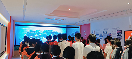 在繆家村史館,師生們了解村發(fā)展史。村史館展示了繆家村落實2008年習(xí)近平同志來村調(diào)研要求,將“走在前列、作好示范”作為村莊建設(shè)的使命,探索土地流轉(zhuǎn)“繆家經(jīng)驗”“飛地抱團”“網(wǎng)格連心”等建設(shè)實踐。