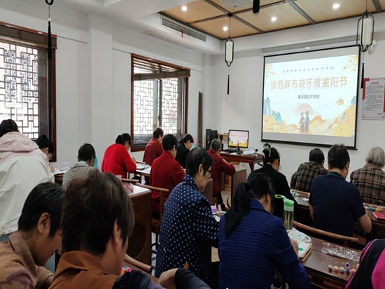 活動即將結束時,學員們非常開心地展示創作的作品,五彩繽紛的顏色和不同的圖案仿佛被賦予了生命。學員李阿姨表示:“這個重陽節不一般,想不到老了也能描繪出這樣有趣的圖案,以后會經常參與這類活動,學習更多的手工技能。”