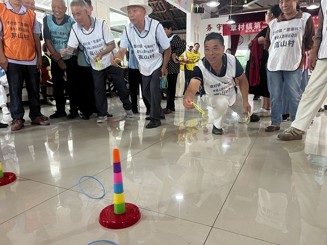 全鎮(zhèn)共有87位老人參加運(yùn)動(dòng)會(huì)。比賽現(xiàn)場(chǎng),夾彈珠、套圈、珠行萬(wàn)里、乒乓球、保齡球和籃球等多個(gè)趣味項(xiàng)目輪番上演,吸引眾多老年人的熱情參與。夾彈珠項(xiàng)目中,老年人手持筷子,聚精會(huì)神地夾取水中的彈珠,每夾起一顆都伴隨著一陣歡呼。套圈區(qū),老年人瞄準(zhǔn)目標(biāo),輕輕一投,套中獎(jiǎng)品的喜悅溢于言表。珠行萬(wàn)里則考驗(yàn)著老年人的團(tuán)隊(duì)協(xié)作和反應(yīng)能力,他們齊心協(xié)力,讓彈珠在軌道上順利傳接。