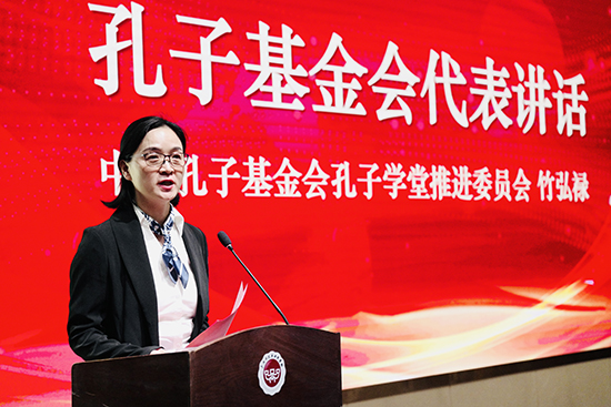 孔子基金會代表講話:竹弘祿詳細介紹了孔子學堂的成立背景與發展歷程,深入闡述了孔子思想的核心價值和時代意義。她強調,孔子的教育思想強調“有教無類”“因材施教”,注重培養學生的品德和才能,對當今教育仍具有重要的啟示作用。她勉勵學生能夠充分利用孔子學堂這一寶貴資源,深入學習孔子文化,積極傳承儒家經典。