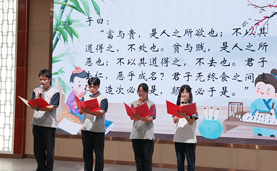 儀式現場,學生代表齊聲誦讀了《論語》中的經典篇章,“三人行,必有我師焉。擇其善者而從之,其不善者而改之。”朗朗讀書聲中,飽含著新時代學子對儒家文化的敬仰與熱愛。