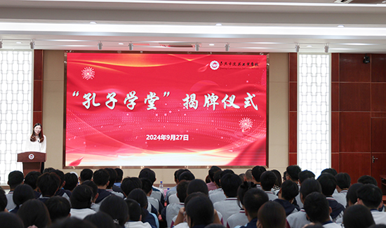 9月27日下午,嘉興市建筑工業學??鬃訉W堂揭牌儀式在樂學樓鼎建報告廳隆重舉行。中國孔子基金會孔子學堂推進委員會副主任竹弘祿、袁汝偉,嘉興市山東商會常務副會長張鵬程、副秘書長丁善霞,嘉興孔子學堂優秀志愿者講師陸建林、虞強、黃衛星,校黨委書記范曉春,黨委副書記、校長李志文,副校長龔磊、劉葉海,紀委書記陳衛明以及相關處室負責人出席儀式。全校師生通過主會場+分會場的方式收看直播。本次活動由學生處主任蔣山花主持。
