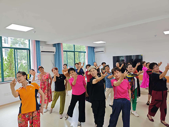 熱身結束后,倪老師帶領學員們復習了上節課的內容,讓大家更好地鞏固舞蹈動作。隨后,課程進入高潮,倪老師開始教授新舞蹈《站在草原望北京》。這首歌曲旋律優美,舞蹈動作充滿草原風情,學員們學習得津津有味。
