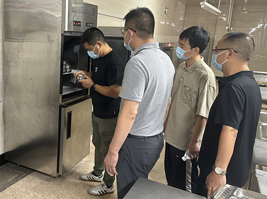 膳管會(huì)一行統(tǒng)一佩戴口罩進(jìn)入食堂內(nèi)各場(chǎng)所,按照流程開(kāi)展認(rèn)真、仔細(xì)地檢查工作。從食品倉(cāng)庫(kù),到操作間、烹飪間,再到配菜間,他們主要查看了主食(米、面、油)、調(diào)料的存放、規(guī)范使用等情況。重點(diǎn)檢查每日早晨驗(yàn)菜及校領(lǐng)導(dǎo)陪餐情況,核查了食品加工色標(biāo)管理的執(zhí)行情況,了解餐具消毒以及食品留樣等相關(guān)工作,并對(duì)照《富陽(yáng)區(qū)教育系統(tǒng)學(xué)校食品安全工作自查表》,逐一提出相應(yīng)改進(jìn)意見(jiàn)。自學(xué)校成立以來(lái),圍繞“安全”和“健康”兩個(gè)主題,膳管會(huì)從食品安全、工作人員衛(wèi)生習(xí)慣等入手,時(shí)刻關(guān)注食品來(lái)源質(zhì)量、營(yíng)養(yǎng)搭配等問(wèn)題,各膳管會(huì)成員充分發(fā)揮監(jiān)督和溝通作用,協(xié)助學(xué)校管理好食堂,共同營(yíng)造和諧的膳食環(huán)境。