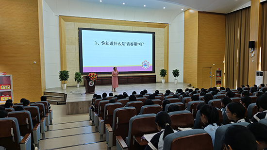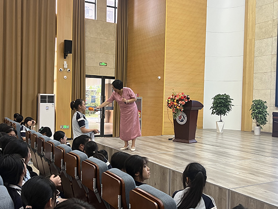 陳可英從什么是青春期說起,介紹了一些青春期的生理知識,引導學生用正確的心態對待自身的變化。然后講解了一些女生例假期間的必備衛生常識,比如不能在此期間捶腰、拔牙、大聲歌唱,也不適合在此期間體檢、坐浴、穿緊身衣褲等,為學生們舒適度過特殊時期保駕護航。