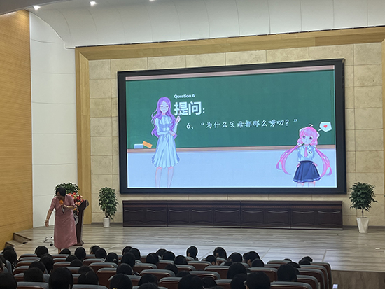 針對青春期學生普遍關心的情緒問題、男女生交往問題和親子溝通問題等,陳可英通過現場互動、出示規則和現身說法等種種方式,告訴女生“心情感冒了”屬于正常情況,可以在不傷害自身不影響他人的前提下找家長、老師、朋友等傾訴,也可以運用動、哭、喊、畫畫、閱讀、聽歌等方式加以宣泄;提到男女生怎樣接觸?強調要把握“最佳距離”,行為坦蕩;如何面對“媽媽的嘮叨”?陳可英表示,90歲的母親于120天前去世,如今仍深深懷念,陳可英用切身的經歷告訴女生,能有媽媽的嘮叨聽是人生最幸福的事,媽媽的嘮叨都深藏著濃情蜜意,或許對媽媽的這種方式不喜歡,但是重在多理解。陳可英趁機向女生傳授了怎么與父母融洽相處的一些小妙招。