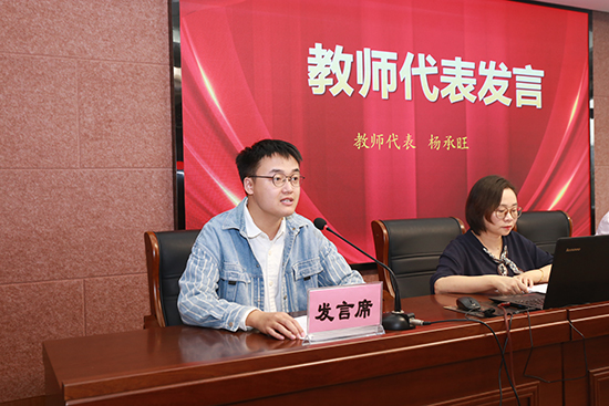 教師代表?xiàng)畛型切聦W(xué)期學(xué)院新進(jìn)教師,中科大法碩應(yīng)屆畢業(yè)。他熱情洋溢的講話讓與會學(xué)員深受感染。楊老師表示他將和全體開放教育教師并肩作戰(zhàn),為學(xué)員提供全方位的學(xué)習(xí)支持和幫助,助力他們成長和發(fā)展。