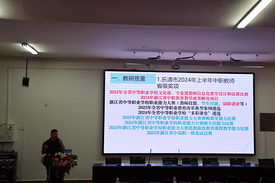 樂清市教育局黨委委員、副局長王旭良作總結(jié)發(fā)言。他對上半年工作主要成效給予充分肯定,也指出在學(xué)校規(guī)范管理、教育教學(xué)、校企合作等方面存在一些不足和差距。
