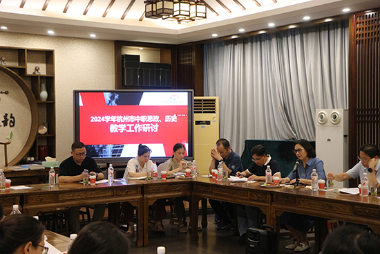 方老師最后總結,她要求全體理事要深入學習貫徹落實習近平總書記關于教育特別是思想政治教育的講話精神,帶頭弘揚和踐行教育家精神,助力職業教育“五金”建設。方老師強調思政學科要充分利用新中國成立75周年的教學契機,以促學為基礎,師訓和備賽為抓手,求真務實,守正創新。通過課程、課堂、師資隊伍的建設,進一步夯實思政課立德樹人的關鍵課程地位,構建方向明、思路清、舉措實的思政教學新生態。歷史學科要以“踔厲篤行耕耘路,思教研學共奮進”為主題,以課堂教學為“主渠道”,推動教學改革創新;以教學競賽為“主陣地”,促進學科品牌建設;以教師隊伍為“主力軍”,加強青年教師培養;推動杭州市中職歷史教育教學高質量發展。