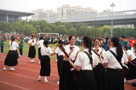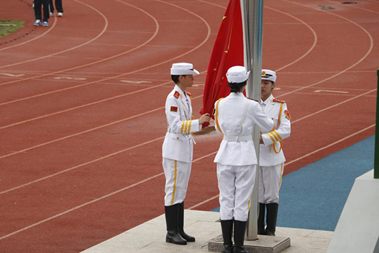 在熱烈的掌聲中,校黨委總書記周潔人宣布諸暨市職教中心第十六屆校園運動會正式開幕。