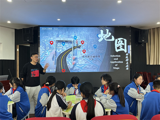 古城中學的卜戈老師和虹星橋鎮中學馮梅老師圍繞課題《地圖的選擇和應用》進行同課異構。卜老師以龍之夢研學為例,通過“地圖我來選”“路線我來定”“數字地圖我會用”“地圖我會選”四個環節引導學生學會選擇和運用地圖。馮老師用一次尋找“杜甫草堂”的旅程開展課堂教學,圍繞“覓圖·遍覽河山”“用圖·漫游天府”“索圖·探秘月球”三個環節,循序漸進、層層拔高,學生通過學習,認識到地圖在我們生活中的重大用途,了解并學習電子地圖在實際生活中的應用。