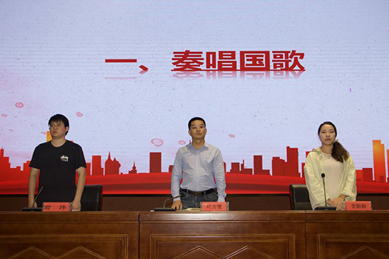儀式在雄壯的國歌聲中拉開帷幕,全體人員肅立,齊聲高唱國歌,表達對祖國的熱愛與敬意。