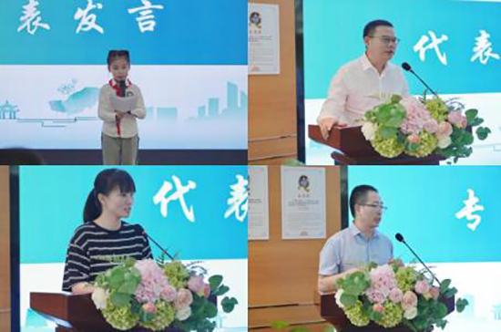 項(xiàng)目介紹結(jié)束后,現(xiàn)場氣氛就到了高潮。趙師紅博士和街道團(tuán)工委書記吳慧一起為項(xiàng)目啟動(dòng)揭幕,同時(shí)領(lǐng)導(dǎo)們還為在項(xiàng)目中發(fā)揮重要作用的三位“大先生”們頒發(fā)了聘書,以表彰他們?yōu)槲幕瘋鞒兴龀龅呢暙I(xiàn)。學(xué)生代表、校長及社區(qū)領(lǐng)導(dǎo)相繼發(fā)言,表達(dá)了對項(xiàng)目的美好祝愿與期待,趙師紅博士對項(xiàng)目進(jìn)行專業(yè)的引領(lǐng)。