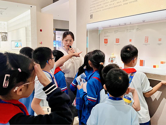 在浙江省非遺文化博物館內(nèi),學(xué)生們熱情高漲,聽著講解員傳授寶貴知識,同時他們也不吝嗇自己的好奇心,勇于舉手提問,展現(xiàn)出對傳統(tǒng)文化的深厚興趣與探索精神。