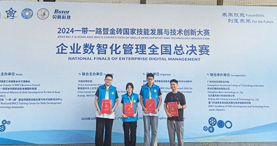 10月18日至10月20日,2024一帶一路暨金磚國家技能發(fā)展與技術創(chuàng)新大賽企業(yè)數(shù)智化管理全國總決賽在廣州科技貿(mào)易職業(yè)學院舉行。來自全國本科、高職、中職共一百余支隊伍同臺競技。海鹽職業(yè)教育中心潘瀘靈、茅效銘、虞思遠團隊及徐斌、趙文杰、俞懿團隊,在總決賽中分別斬獲中職組第一、第二的好成績,喜獲金牌、銀牌。