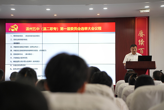 近日,溫州市第五中學(溫州市第二職業(yè)中等專業(yè)學校)黨總支部升格黨委并完成選舉工作。黨員大會在黎明校區(qū)順利召開,會議采取無記名投票和差額選舉方式,選舉產(chǎn)生第一屆黨委委員會。隨后,新一屆黨委召開第一次全體會議,雷學遠同志當選黨委書記、潘樂慧同志當選黨委副書記。
