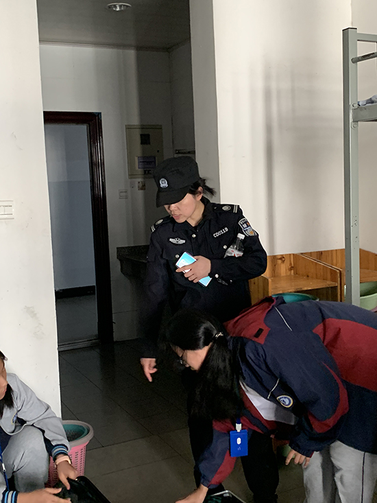 城東派出所由楊金龍警官帶隊,21名干警整裝待發。在學生干部的協助下,干警們對學生寢室進行了認真檢查,特別是對于衣柜、皮箱等容易藏匿物品的地方進行了逐個檢查。無數的事實證明,管制刀具會帶來校園安全隱患,大功率電器、劣質充電寶則是火災的元兇。經過兩個小時的檢查后,除了一些違規使用的吹風機外,沒有發現管制刀具。