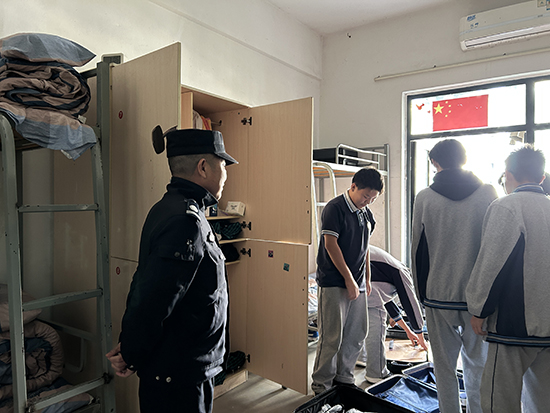 “請排好隊,以寢室為單位等待檢查”“請把箱子、衣柜門打開”,11月7日下午,諸暨技師學院安管處聯合諸暨市城東派出所對學生寢室開展了管制刀具等違禁物品突擊檢查。