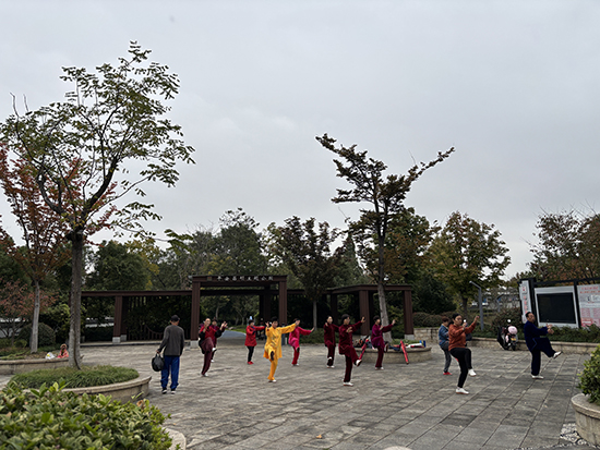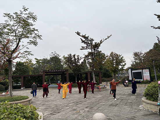 11月11日上午,陽光明媚,秋風送爽。在風景如畫的天目橋旁,昌碩分院桃園太極隊的練習場地傳來陣陣悠揚的音樂聲,一場充滿活力的太極拳練習活動正在這里舉行。