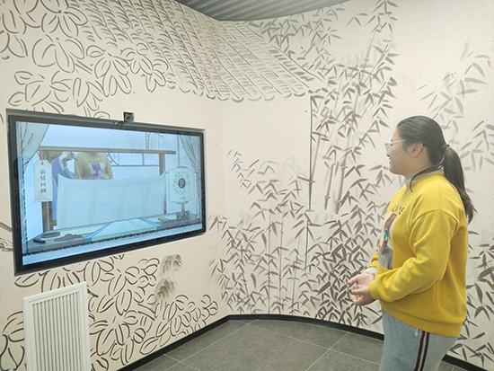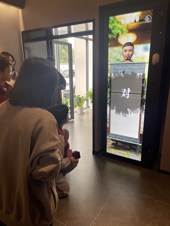 除了靜態(tài)的文圖展示外,詞學(xué)館還精心設(shè)計(jì)了多個(gè)互動(dòng)產(chǎn)品,用互動(dòng)體驗(yàn)代替?zhèn)鹘y(tǒng)觀展模式,讓同學(xué)們?cè)谶呁孢厡W(xué)中感受體驗(yàn)宋詞的文化魅力。