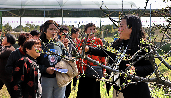 她以地域性特色產業牽頭,小農戶抱團集群的方式,帶動周邊農民增收致富。她免費提供種苗、定期技術指導、現場實地教學、莊園兜底包銷,沈建利通過一顆小小的“槜李”,創辦泥土香莊園,敲開全村致富大門。她組織102名社員帶動全村1800多戶村民種植槜李30公頃,年產量15.4萬公斤,年產值超1200萬余元,平均每戶增收6600余元。一人帶動一村人,沈建利把槜李種成致富“金果子”,把雙豐村打造成了浙北槜李第一村。