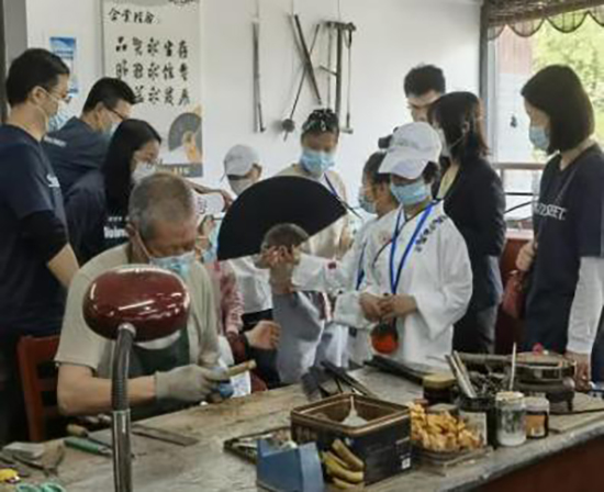 2022年,項目團隊成員陸續走訪調研了工匠技藝生產性基地、相關企業,非遺大師工作室,傳統老手藝學習點。通過“政校企社”協同,兩年來陸續挖掘培育了“杭州天竺筷廠”“杭州王星記扇業有限公司”“傳梭博物館”“杭州市中策職業學校”“杭州市創意藝術學校”“百草園”“慧廬琴堂”“武林之光非遺傳習中心”……等9個“行走的工匠”終身學習體驗基地,在拱墅區終身學習活動周開幕式上授牌。各工匠基地有的集工藝博物館和學習體驗場于一體,有的將工作生產場所和場館參觀體驗融一體,有的結合鄉村微型博物館和工匠技藝培訓點,各具特色,建立以來受到了市民們的歡迎。“行走的工匠”項目基地年均接待市民公益體驗學習活動10000余人次,開展“匠心之旅”研學活動100余場,市民們既能在城市參與各類型的非遺技藝體驗培訓,又能與鄉村進行文化互動,項目的實施促進了工匠技藝從靜態向活態傳承,為弘揚傳統技藝所蘊含的文化精髓和價值、發展優秀傳統鄉土文化提供了零距離感受、體驗和學習的陣地。