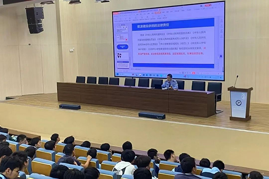為深入推進(jìn)學(xué)校立德樹人工作,加強(qiáng)校園法治教育,提高學(xué)生法治觀念,增強(qiáng)學(xué)生安全防范能力,11月15日下午,浙江信息工程學(xué)校邀請了湖州市公安局看守所所長倪國江警官向參會學(xué)生進(jìn)行了“遠(yuǎn)離違法犯罪,爭做新時(shí)代少年”為主題的講座。