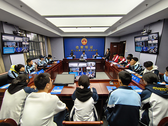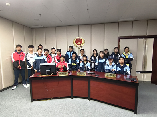 研學的第一站是海寧市未成年人法治教育基地。在莊嚴的升旗儀式后,同學們懷著好奇與敬畏之心,認真參觀海寧市人民檢察院辦案工作區和未檢工作室、仔細聆聽檢察官的講解。在“模擬聽證會”環節,19名黑水同學分別扮演主持人、檢察官、書記員、偵查人員、嫌疑人、聽證員等角色,圍繞一起刑事案件的不起訴處理意見展開聽證,鍛煉批判性思維、團隊協作與表達能力。通過對海寧市未成年人法治教育基地的參觀,檢察官運用生動的案例和豐富的資料,向黑水學子普及未成年人保護法的相關知識,教導同學們如何用法律武器保護自己。在快速檢測實驗室,同學們第一次認識了空氣檢測儀、粉塵檢測儀、噪音監測儀等各類先進檢測設備。研學期間同學們積極提問,與檢察官互動交流,現場氣氛熱烈。