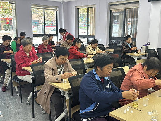活動(dòng)現(xiàn)場,老師簡單地向老年居民介紹了老年人手部皮膚特點(diǎn)及需求,講解了平時(shí)生活中如何正確護(hù)膚以及如何選擇護(hù)膚品等相關(guān)知識(shí),并把制作護(hù)手霜的相關(guān)材料依次分發(fā)給老年居民。