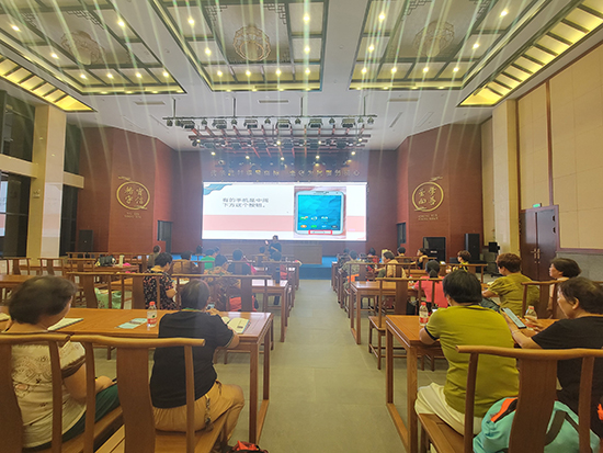 活動中,培訓老師先給大家講解演示了最基本的鼓點、基本步伐、基本動作,阿姨們虛心求教,認真地反復練習推敲、交流。然后在老師帶領下開始學習新曲目的腰鼓動作。舞蹈隊也在老師的帶領下,舞動金色扇子隨著音樂整齊地擺動著,優美的身影、變幻的隊形、表現了隊員們對文藝的熱愛和終身學習精神的追求。