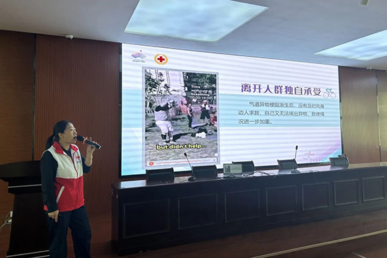 培訓伊始,宋老師強調氣道異物梗阻的嚴重性和黃金急救時間的重要性。她指出,氣道異物梗阻一旦發生,將迅速危及患者生命,特別是在4—6分鐘內未得到及時處理的情況下,后果將不堪設想。因此,迅速而正確的應急處理至關重要。