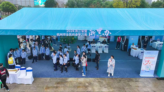 “學(xué)習(xí)改變生活”為主題的2024年浙江省暨杭州市全民終身學(xué)習(xí)活動(dòng)周在浙江展覽館南廣場(chǎng)年舉行?;顒?dòng)周期間,杭州市各區(qū)縣(市)圍繞“學(xué)習(xí)改變生活”的主題,精心布置了文化傳承、學(xué)習(xí)場(chǎng)景、精神面貌、數(shù)字賦能、社會(huì)治理等5個(gè)單元?jiǎng)?chuàng)意展區(qū),將宋韻文化、都市文化、數(shù)字技術(shù)等元素深度融合,打造沉浸式的未來(lái)美好生活空間。