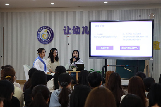 隨后,徐玉副園長介紹了園本課程《做自己的幸福小主人》。徐副園長摒棄傳統講解模式,采用互動性圈談方式,在互動交流中介紹了幼兒園的教育理念與課程體系,讓在座老師們對幼兒園的“幸福課程”有了更深入的認識。