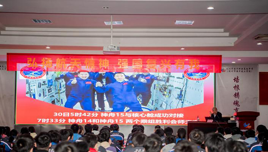 沈院士進(jìn)一步指出,中國(guó)一代代的航天人,在全國(guó)人民的大力支持之下,肩負(fù)起攀登航天科技高峰的使命,他們?yōu)樽鎳?guó)的航天事業(yè)淡泊名利、默默奉獻(xiàn),獻(xiàn)出青春年華,獻(xiàn)出聰明才智,獻(xiàn)出熱血汗水,甚至獻(xiàn)出寶貴生命!他希望大家將來(lái)能加入航天隊(duì)伍,為中國(guó)航天事業(yè)再續(xù)輝煌!