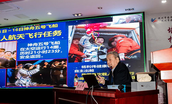 沈力平院士的講座從載人航天工程的立項(xiàng)及“三步走”發(fā)展戰(zhàn)略、中國(guó)載人航天工程技術(shù)體系、飛船與空間實(shí)驗(yàn)室歷次飛行任務(wù)、空間站建設(shè)及在軌科學(xué)技術(shù)研究與應(yīng)用、載人月球探測(cè)工程以及對(duì)未來(lái)的展望六個(gè)方面展開(kāi)。
