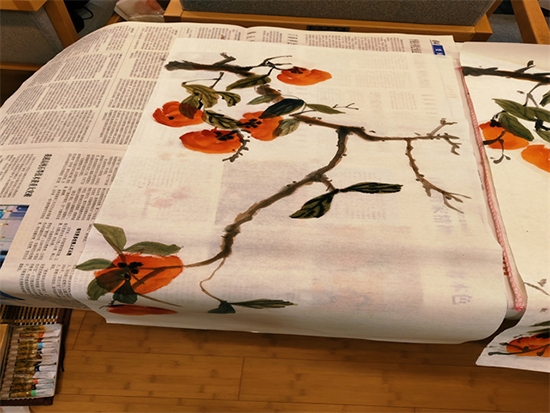 隨著一個個小柿子掛在枝頭,配以疏密相間的葉子。一幅幅“柿柿如意”作品就完成了。
