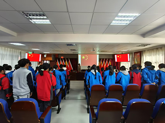 中國共產主義青年團團歌《光榮啊,中國共青團》響起,新老團員們在鏗鏘的旋律中唱出了自己的青春印記,入團儀式也在嘹亮的團歌中落下帷幕。