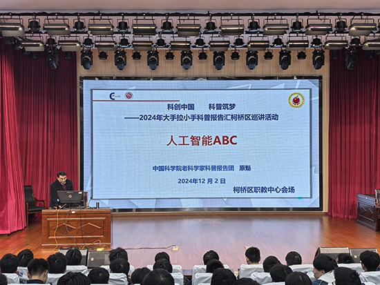 鳥欲高飛先振翅,人求上進先讀書。為了讓廣大學生好讀書、讀好書,愛科學、學科學、用科學,柯橋區中小學校“科普講座進校園”活動于12月1日至12月7日邀請3位中科院老科學家赴全區中小學校作巡回科普報告。12月2日,原魁教授來到柯橋區職業教育中心會場,作名為“人工智能ABC”的講座。